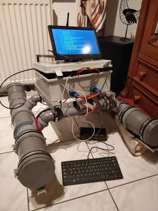 Die Schwimmkörper bestehen aus handelsüblichen Kanalrohren (HT-Rohr) die zusammengesteckt werden. Auf diesem Schwimmkörper ist eine spritzwassergeschützte Kiste befestigt, in der sich Antrieb und „Gehirn“ des Bootes befinden. Unter dem Boot befinden sich 2 Strahlruder, die für eine hohe Manövrierbarkeit sorgen. Das „Gehirn“ des autonomen Bootes ist ein kleiner Autopilot-Computer der mit der Opensource-Software „Ardurover“ läuft. Diese Software, wie auch einige weitere Komponenten müssen immer wieder umprogrammiert werden, um das Verhalten des Bootes zu optimieren.
