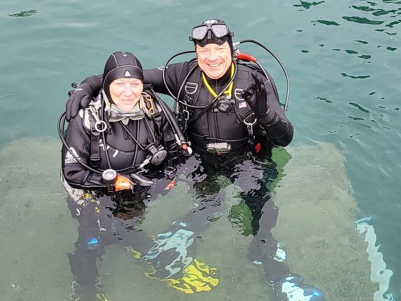 Am Sonntag war das Wetter nicht ganz so stabil, aber es blieb weitestgehend trocken und es wurde wieder den ganzen Tag fleißig getaucht. Auch ganz persönliche „runde“ Tauchgänge wurden dort absolviert.