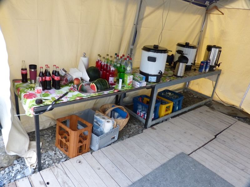 Für das leibliche Wohl war bestens gesorgt. Ein wohlgefüllter Kühlwagen mit Getränken stand bereit, aus dem sich alle bedienen konnten. Es gab Kaffee, Laugenbrezeln und -stangen mit Spundekäs, gekühlte Wassermelonen und der Kuchen war beim besten Willen nicht zu schaffen.