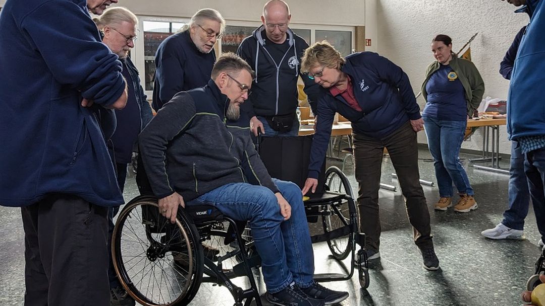 Samstagmorgens auf dem Parkplatz eingetroffen, stellten die Seminarteilnehmer schnell fest, dass die Hauptzielgruppe, um die es in diesem Seminar geht, bereits angekommen war. Fleißig wurde Equipment verladen, Rollstühle geschoben und Seminarunterlagen in die Ausbildungshalle gebracht.