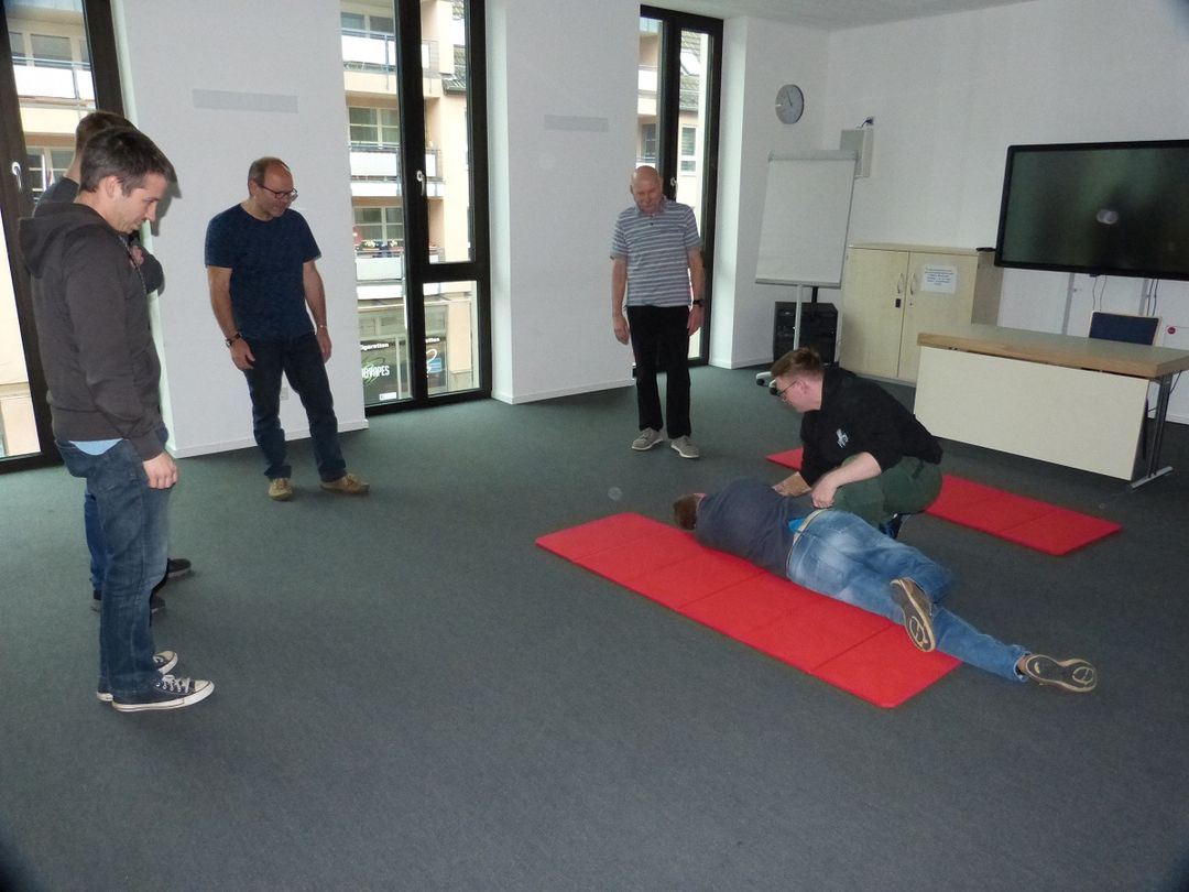 Einen besonderen Dank gebührt neben den Vortragenden ebenfalls der Gesamt-Organisation/Administration durch Ines Heinrich, dem Logistiker Kai Hornemann und der Leitung der Praxisstation „Stabile Seitenlage/Bergungs- und Rettungsgriffe“ durch Winfried Marx und Dominik Schneider.