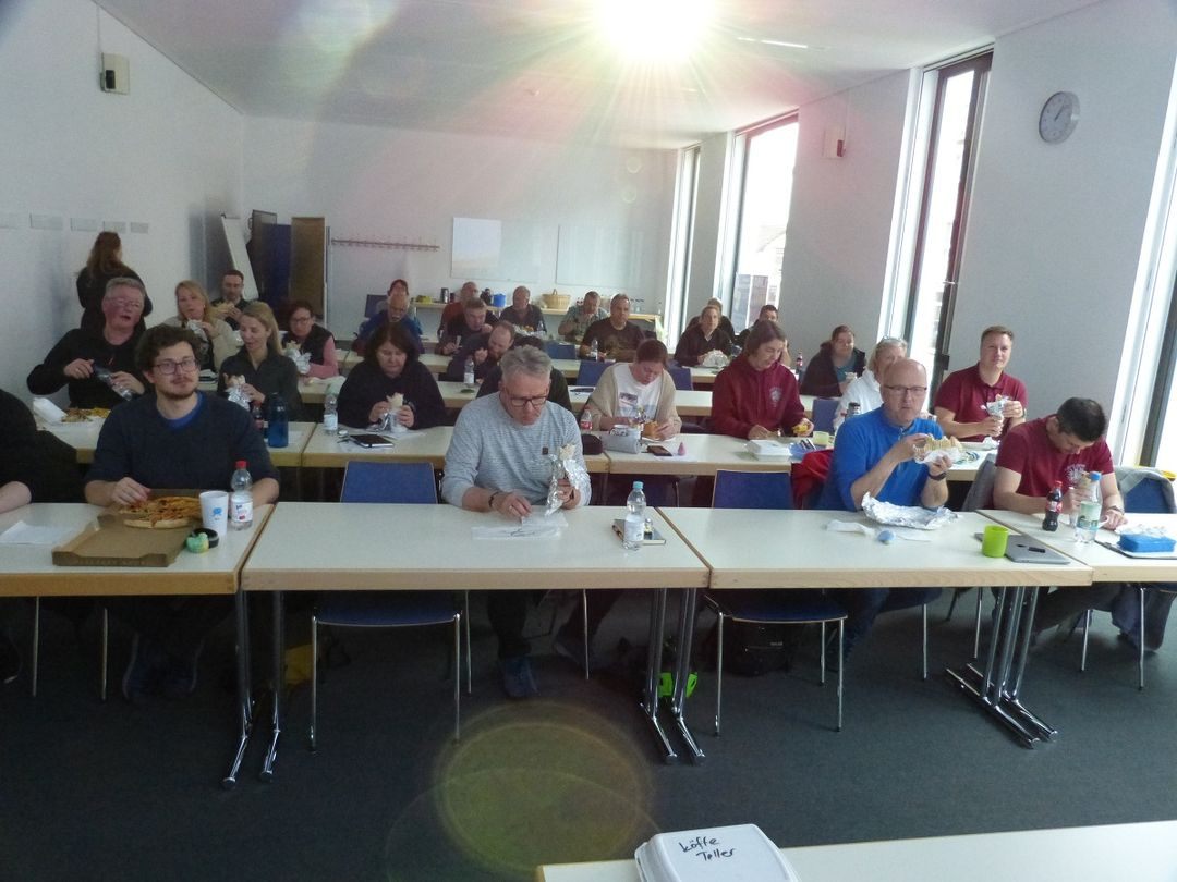 Für die Mittagspause war im Vorfeld bereits für das leibliche Wohl gesorgt worden. Alle Teilnehmenden und Mitwirkenden hatten mit der verbindlichen Teilnahme-Rückmeldung anhand einer übersandten Speisekarte ihre Wünsche geäußert. Die Lieferung durch „SARAY-Grill Ingelheim“ erfolgte pünktlich, war vollständig und hat allen geschmeckt.