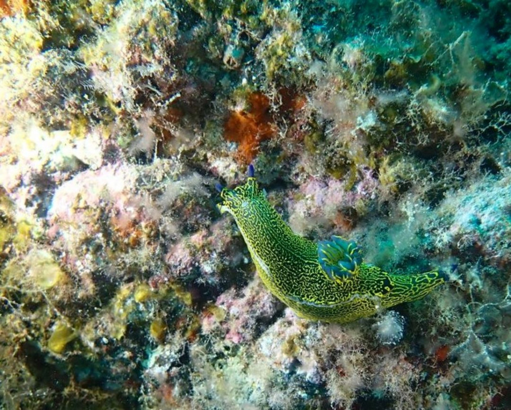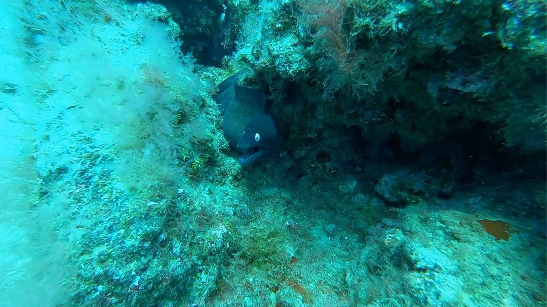 Also Geräte an und ab zurück ins Wasser. Der Atlantik war auch so freundlich, uns mit ein bisschen Strömung zu beglücken, um uns für die anschließenden Tage kompetent einzugrooven. Nach der Demonstration der Basics, WNR und Bleicheck, wurde abgetaucht, und dank nur zwei kurzer Übungen blieb bei dem ersten Eingewöhnungstauchgang mit Gerät genug Zeit für Fische (und andere Wesen) zu gucken – Muräne, Languste, Zackenbarsche und ein Schwarm großer Barrakudas sind die Bilanz des ersten Tages. Und erste Ausfälle (Flossenband, Kompass, kaputte Leinen, Maskenbänder…) – aber das sei nur Rande erwähnt.
