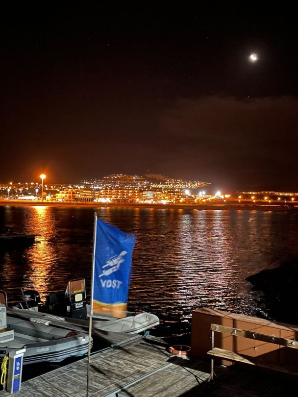 Hola Amigos. Langsam haben sich alle Teilnehmer größtenteils eingewöhnt und die Nächte werden für alle, auch durch einen Zimmerwechseln gen Meerblick, immer erholsamer. Leider feiern wir heute auch schon Bergfest. Der letzte Ausbildungstauchgang und der erste Prüfungstauchgang stehen an. Nach dem Frühstück, mit verbrannten oder geklauten Toastbroten, fanden wir uns zum morgendlichen Briefing mit unserem TLvD Alex und dem Kurzreferat zum folgenden Tauchgang von Tobi N. an der Basis ein. Auf dem Boot wurde uns bewusst, wie spiegelglatt sich der Atlantik heute präsentiert und wir freuten uns auf einen grandiosen Tag auf dem Wasser.