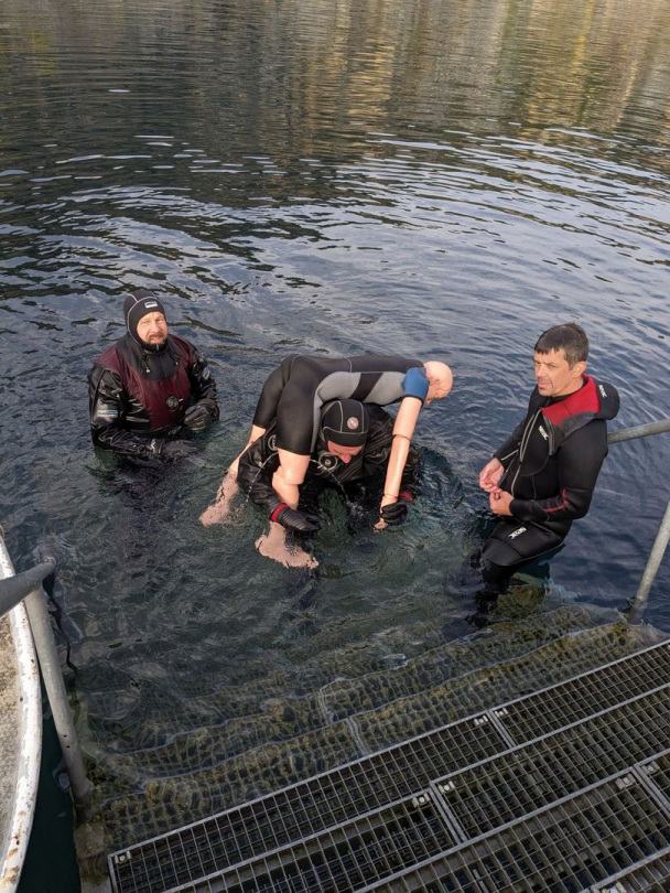 Die zweite Einheit war die Rettung eines verunfallten Gerätetauchers horizontal.