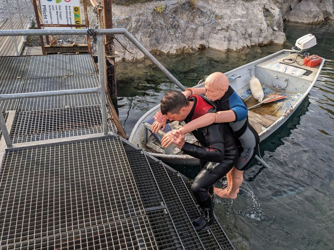 Vermutlich gibt es fast so viele Methoden einen verunfallten Gerätetaucher zu retten, wie es Tauchausbilder gibt, die sich nicht regelmäßig weiterbilden. Vieles wurde im Laufe der Zeiten geändert, verbessert, modifiziert und angepasst, deshalb war es wieder einmal an der Zeit, die aktuelle Vorgehensweise zu lernen.