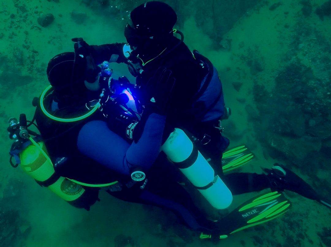 Bei Überhängen, Meeresgrotten, Wracks oder Höhlen kann es vorkommen, dass Tauchbuddys zuerst eine Strecke in der Horizontale machen müssen, bevor die Möglichkeit besteht, sie an die Oberfläche zu bringen. Und hier wurde es wirklich knifflig: Die verunfallte Person wurde angetaucht, „angesprochen“ und auf den Rücken gedreht, die rettende Person ließ sämtliche Tarierluft ab, legt sich auf die verunfallte Person, tariert diese und schwimmt auf diesem „menschlichen Floß“ bis zur Aufstiegsstelle, wo dann die „klassische“ Position wieder eingenommen werden kann.