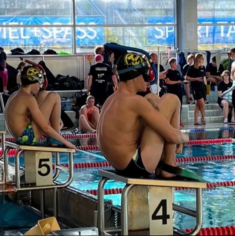 Am 03. November trafen wir uns um 14 Uhr in Wiesbaden, um nach Brandenburg an der Havel aufzubrechen. Dort sollten am nächsten Tag sowohl der Länderpokal als auch der Jugendländerpokal im Finswimming stattfinden. Bei diesem Wettkampf treten die Landesverbände gegeneinander an, sodass die Vereinszugehörigkeit nicht im Vordergrund steht. Andere Landesverbände können auf mehrere flossenschwimmtreibende Vereine zurückgreifen und ihre Landesauswahl zusammenstellen. Für Rheinland-Pfalz traten in diesem Jahr acht BingerInnen an: Stella Jöckel (weibliche Jugend), Lisa und Julia Walter (Damen) sowie Jan und Leonard Blaszczyk, Florian und Paul Funke und Silas Moritz (männliche Jugend). Sandra Funke übernahm die Position der Wettkampfrichterin.