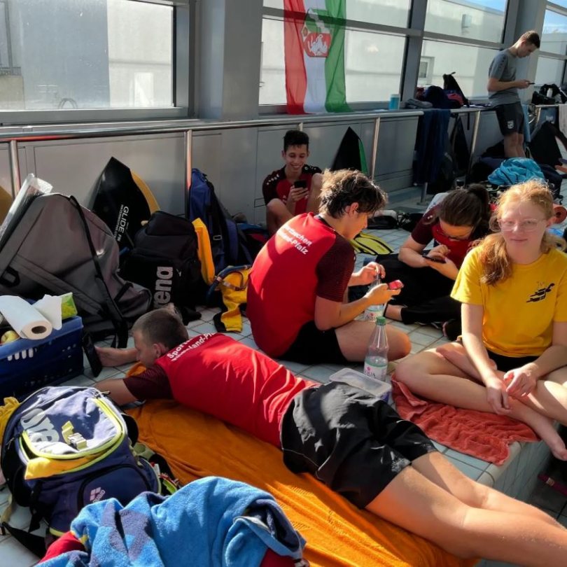 Im zweiten Block standen 50m FS und 200m FS auf dem Programm. Florian (Platz 11) und Jan (Platz 6) holten wichtige Punkte für den LVST. Über 200m FS starteten Stella (Platz 16), Lisa (Platz 10), Julia (Platz 8), Paul (Platz 7) und Silas (Platz 8). Im dritten Block standen 800m FS und 100m ST an. Die Langstrecke wurde von Lisa (Platz 8), Julia (Platz 11), Silas (Platz 9) und Paul (Platz 6) absolviert. Als letzte Einzelstrecke stand nun für Leonard und Jan die 100m ST an. Das viele DTG-Training der letzten Wochen zeigte sich auch hier, denn beide schwammen neue persönliche Bestzeiten und holten auf Platz 6 und Platz 9 nochmals einige Punkte für Rheinland-Pfalz.