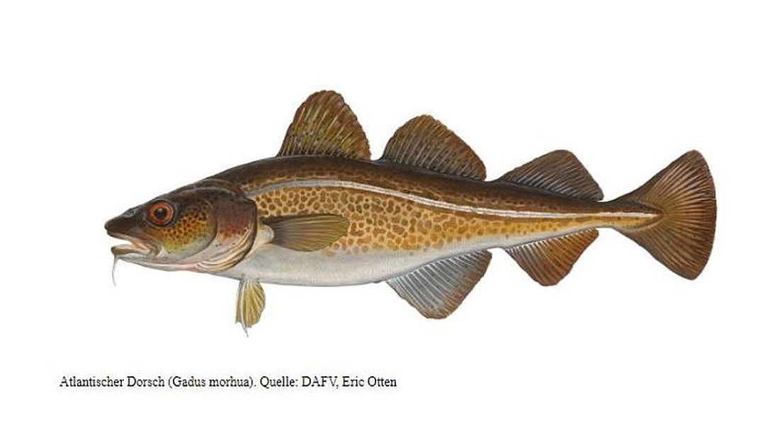 Abbildung 1: [Illustration Atlantischer Dorsch, gezeichnet von Eric Otten; © Deutscher Angelfischerverband, zur Verwendung in Zusammenhang mit dieser Pressemitteilung bei Quellenangabe gestattet]