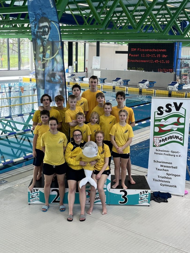 Am Wochenende 16./17.03.2024 war der Wettkampf-Trupp aus Rheinland-Pfalz, also fünfzehn Binger SportlerInnen, bei den süddeutschen Meisterschaften im Flossenschwimmen. In diesem Jahr fanden die Meisterschaften in Freiburg statt, was für uns eine vergleichsweise kurze Anfahrt bedeutete.