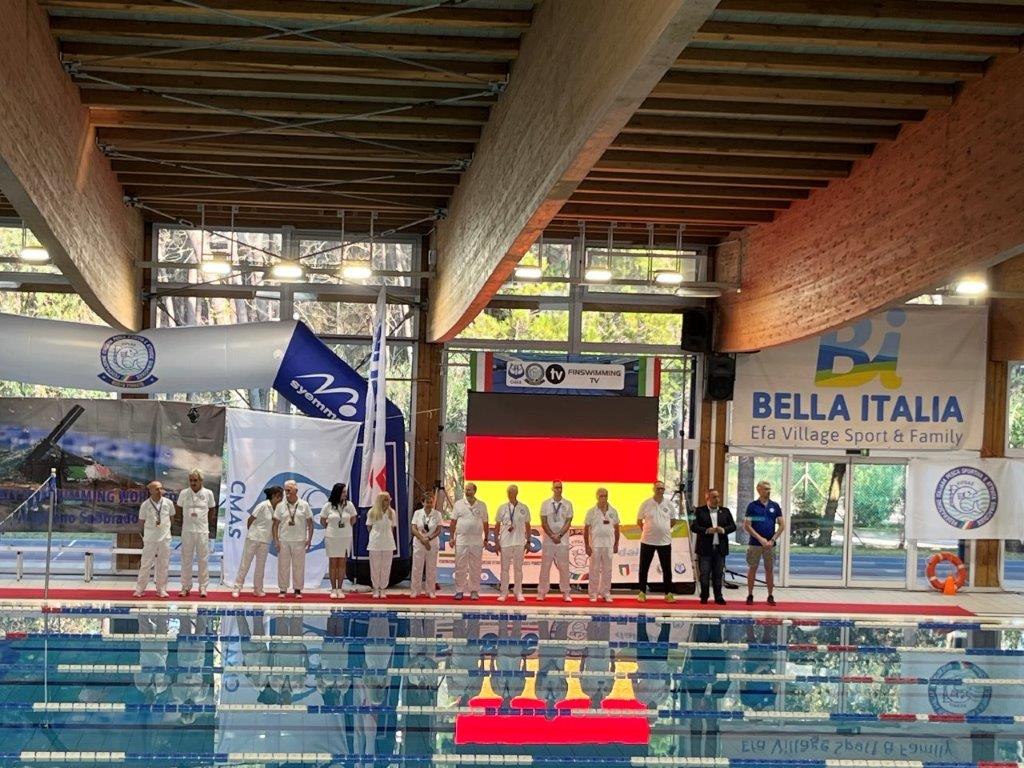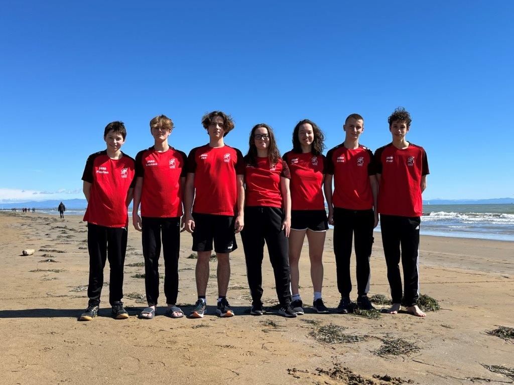 In dieser Märzwoche hatte der BTC ein großes Ereignis – den Worldcup des Finswimmings 2024, die zweite Runde, welche in Lignano Sabbiadoro ausgetragen werden sollte. An dem ersten Tag des Wettkampfes gab es nicht sehr viele Strecken, die die WettkämpferInnen des BTCs schwimmen mussten. Am ersten Tag standen nur die 50 Meter BiFin (Flo 25,59 PB, Jan 23,60 Landesrekord),100 Meter Flossenschwimmen (Flo 53,28, Leo 50,35 PB, Jan 45,30 Landesrekord, Paul 47,85, Silas 51,79, Lisa 53,26 und Julia 56,71) und eine 4x100m FS Staffel (03:29,61 Landesrekord) von den jugendlichen Jungs an. Hier erreichte Bingen ein Top Ten Ergebnis, denn die Staffel erreichte den achten Platz. Alle waren zufrieden mit ihren Zeiten, doch am Start gab es manchmal Probleme mit der Zeit, wann man auf dem Startblock stehen sollte, denn das Startkommando war ungewohnt. In der Mittagspause machten Sandra, Paul, Flo, Silas, Lisa und Julia Bekanntschaft mit dem Strand und den Meeresbewohnern.