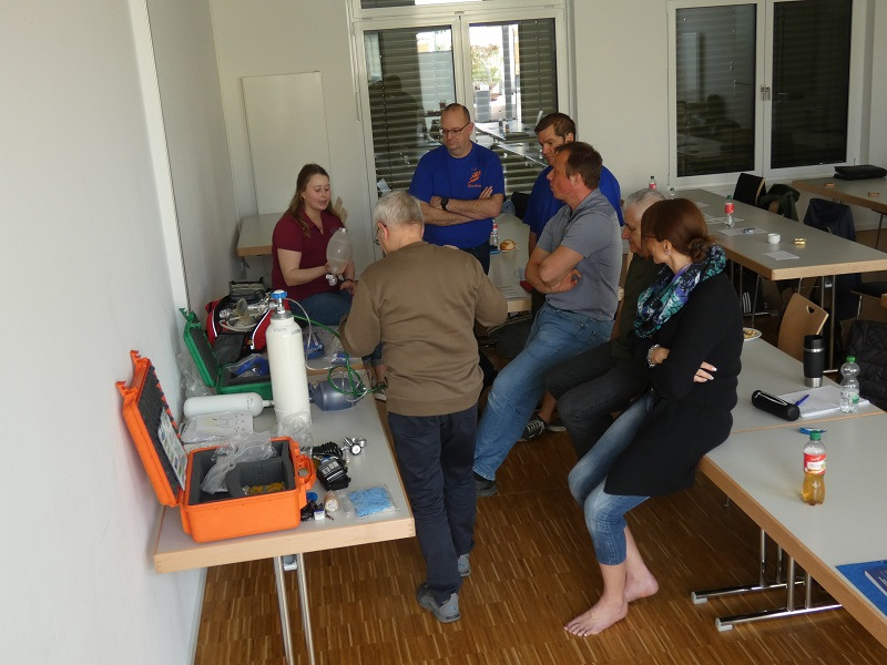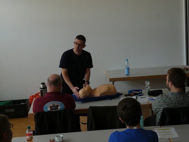 Uli (LV-Arzt), Annka (TL 1), Frank (VDST-Mediziner), Steven (noch TL 2.), Jan (TL 3), Wolfgang (Tauchgemeinschaft Beluga Salzgitter e.V.) für die zur Verfügung gestellte Übungspuppe (so konnten alle üben, üben, üben), unserem LVST-Ausbildungsleiter Frank, Winfried Marx (TC Koralle Ingelheim e.V.) für die Buchung des Bürgerhauses und bei Kai (Verpflegung, Transport usw.) für das gelungene Seminar.