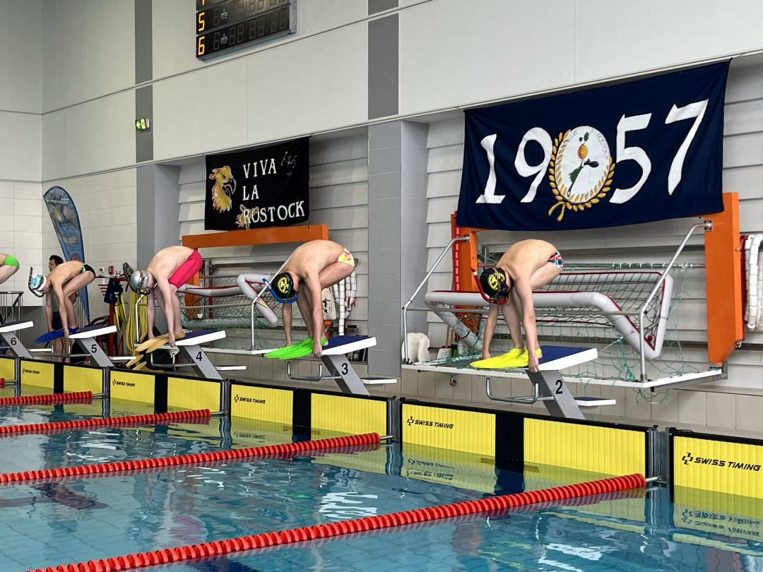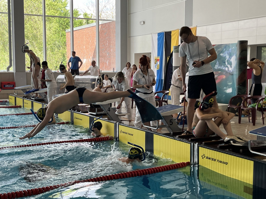 Als wir nach einem ausgiebigen Frühstück in das Schwimmbad gefahren sind und das Einschwimmen beendet hatten, ging es im ersten Abschnitt mit 50m, 800m und 100m Flossenschwimmen weiter. Bei 50m Flossenschwimmen starteten Paul, Florian, Ben, Leonard und Silas. Bei 800m Flossenschwimmen starteten Ben und Silas. Bei der Siegerehrungen wurde für 50m Flossenschwimmen leider keiner geehrt, aber Ben wurde in der Kategorie D (AK 12/13) 10. mit 00:27,47 und neuer Bestzeit. Leonard wurde in der Kategorie C (AK 14/15) 5. mit 00:21,84 und neuer Bestzeit. Florian wurde ebenfalls in der Kategorie C (AK 14/15) 12. mit 00:23,72 und neuer Bestzeit. Silas wurde ebenfalls in der Kategorie C (AK 14/15) 8. mit 00:22,34 und erreichte auch eine neue Bestzeit. Paul wurde in der Kategorie B (AK 16/17) 8. mit 00:21,69 und schaffte auch eine Verbesserung. Bei der Siegerehrungen für 800m Flossenschwimmen wurde nur Silas geehrt. Ben hat leider nicht die Limitzeit erreicht, aber trotzdem eine Bestzeit geschafft. Silas wurde in der Kategorie B (AK 14/15) 3. mit 8:59,06 und persönlichem Rekord.