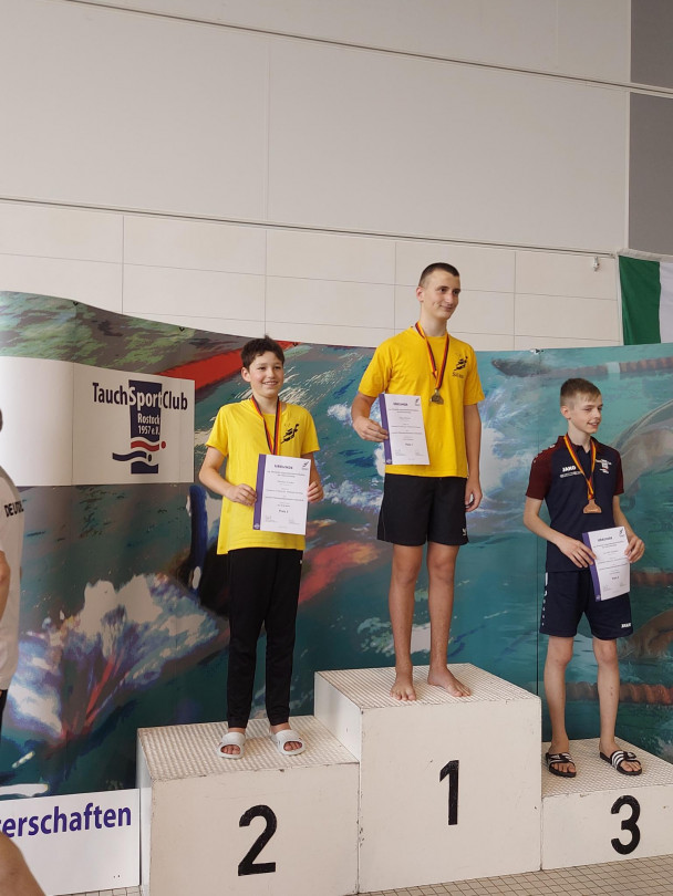 Bei den 100m Streckentauchen schwamm nur Leonard. Er wurde nicht geehrt. Leonard wurde in der Kategorie C (AK 14/15) 4. mit 00:52,37 und Bestzeit. Bei den 50BiFin schwammen Paul, Florian und Silas. Es wurden nur Paul und Silas geehrt. Paul wurde in der Kategorie B (AK 16/17) deutscher Jugend Vizemeister mit 00:23,42 und Landesrekord. Silas wurde in der Kategorie C (AK 14/15) ebenfalls deutscher Jugend Vizemeister mit 00:24,57 und Bestzeit. Florian wurde ebenfalls in der Kategorie C (AK 14/15) 7. mit 00:26,42.
