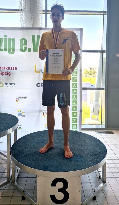 An dem Wochenende des 8. und 9. Juni fanden in Leipzig die 64. Deutschen Meistershaften und 45. Deutschen Juniorenmeisterschaften im Flossenschwimmen in Leipzig statt. Lisa und ich wurden am Freitag von unserer Mutter zum Treffpunkt an Katjas Schule gefahren, wo Paul schon auf uns wartete. Bis Katja ankam, verbachten wir die Zeit mit Reden, Schritte sammeln und Spielen. Wir packten dann unsere Sachen in ihr Auto und fuhren mit Verspätung los.