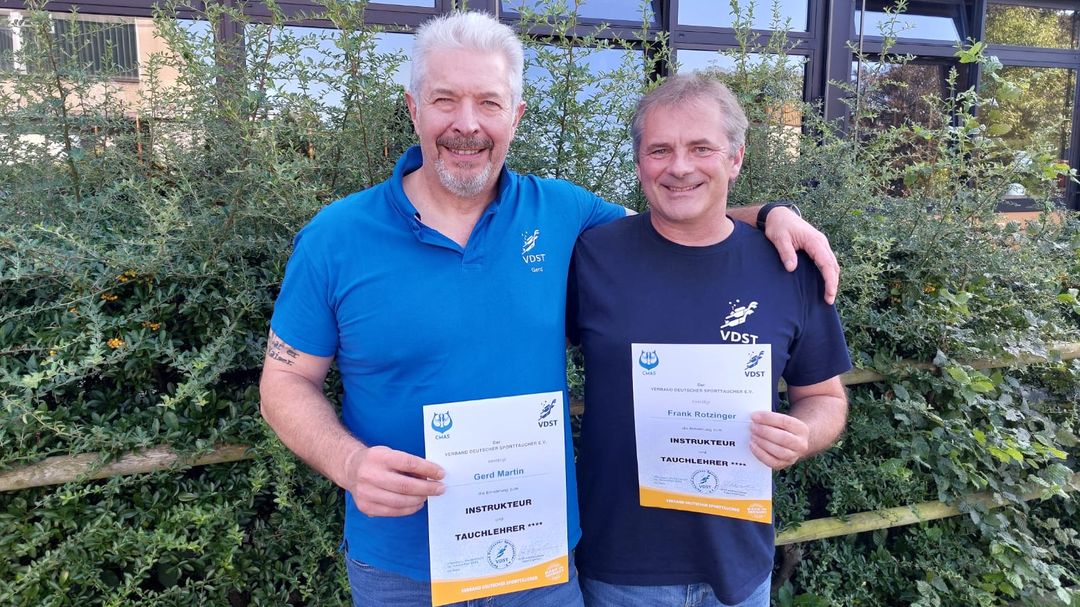 VDST TL4-Instrukteure werden auf Vorschlag des VDST-Ausbildungsleiters auf Zeit ernannt und übernehmen besondere Aufgaben im Rahmen der VDST-Ausbildung. Gerd Martin ist weiterhin für das “Tauchen mit Kindern & Jugendlichen” zuständig, während Frank Rotzinger künftig den Bereich “Digitalisierung der Ausbildung & Sidemount” betreuen wird. Die Ernennung ist ein Beweis für die hohe Qualität unserer Ausbildungsarbeit im LVST und dadurch bekommt unser Landesverband sicher noch mehr Gewicht auf Bundesebene.