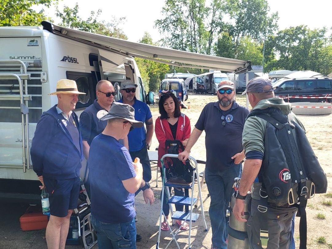 Der Samstagvormittag stand ganz im Zeichen der Ausrüstung. Jede und jeder stellte sein eigenes System vor, sodass ein spannender Vergleich unterschiedlicher Sidemount-Jackets und -Konfigurationen möglich war. Gemeinsam wurden Details besprochen und verbessert – von der Atemreglerführung über das Rigging bis hin zum Handling der Flaschen.