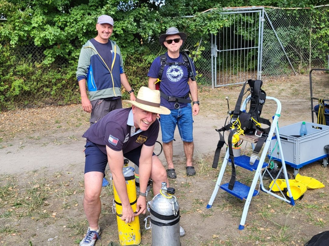 Am Wochenende des 23. und 24. August fand am Jägerweiher die Praxisausbildung zum DTSA-Sidemount* statt. Nach der Theorieeinheit am Montag zuvor trafen sich sechs motivierte Teilnehmende mit drei erfahrenen Sidemount-Ausbildern, um das Tauchen mit zwei seitlich getragenen Flaschen in der Praxis intensiv kennenzulernen.