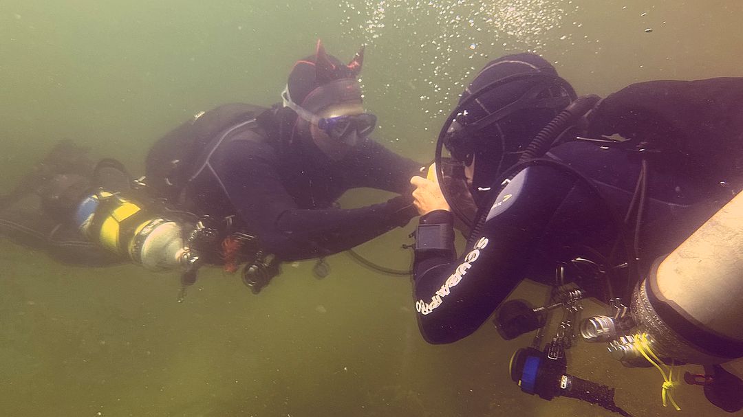 Am Samstagabend wurde es noch einmal trocken: Zwanzig Prüfungsfragen, überwiegend im Multiple-Choice-Format, mussten beantwortet werden. Doch die gute Vorbereitung zahlte sich aus – alle sechs Teilnehmenden bestanden erfolgreich und dürfen sich nun DTSA-Sidemount*-Taucher nennen.
