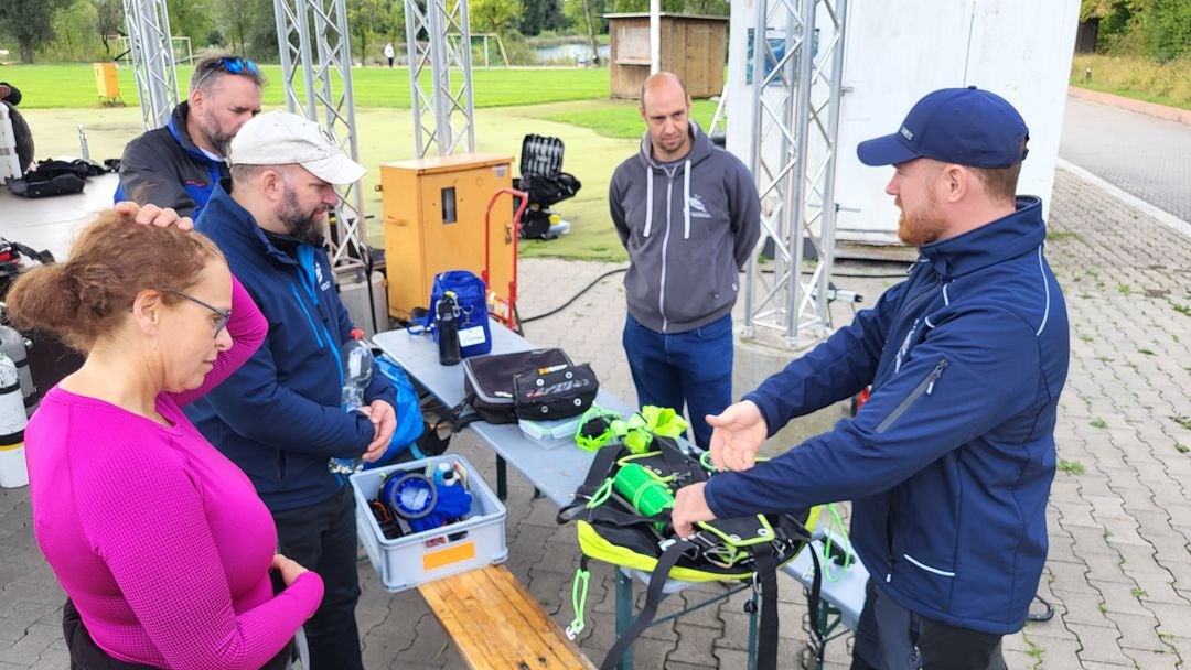 Das Hauptaugenmerk lag auf den unterschiedlichen Ausrüstungen und deren Konfigurationen von Schlauch- und Reglerführung, Befestigungen, Loops, Bungees, Schnellablässe und viele individuell angepasste Details. Auch die unterschiedlichen Varianten der Stage-Befestigung wurden vorgestellt und diskutiert. Neben diesem intensiven technischen Austausch war es eine großartige Gelegenheit, Freundschaften zu pflegen und sich weiter zu vernetzen. Die Diskussion über verschiedene Ansätze beim SM-Tauchen, insbesondere die Rettungsübung im Sidemount und die unterschiedlichen Verbände, sorgten für reichlichen Gesprächsstoff.