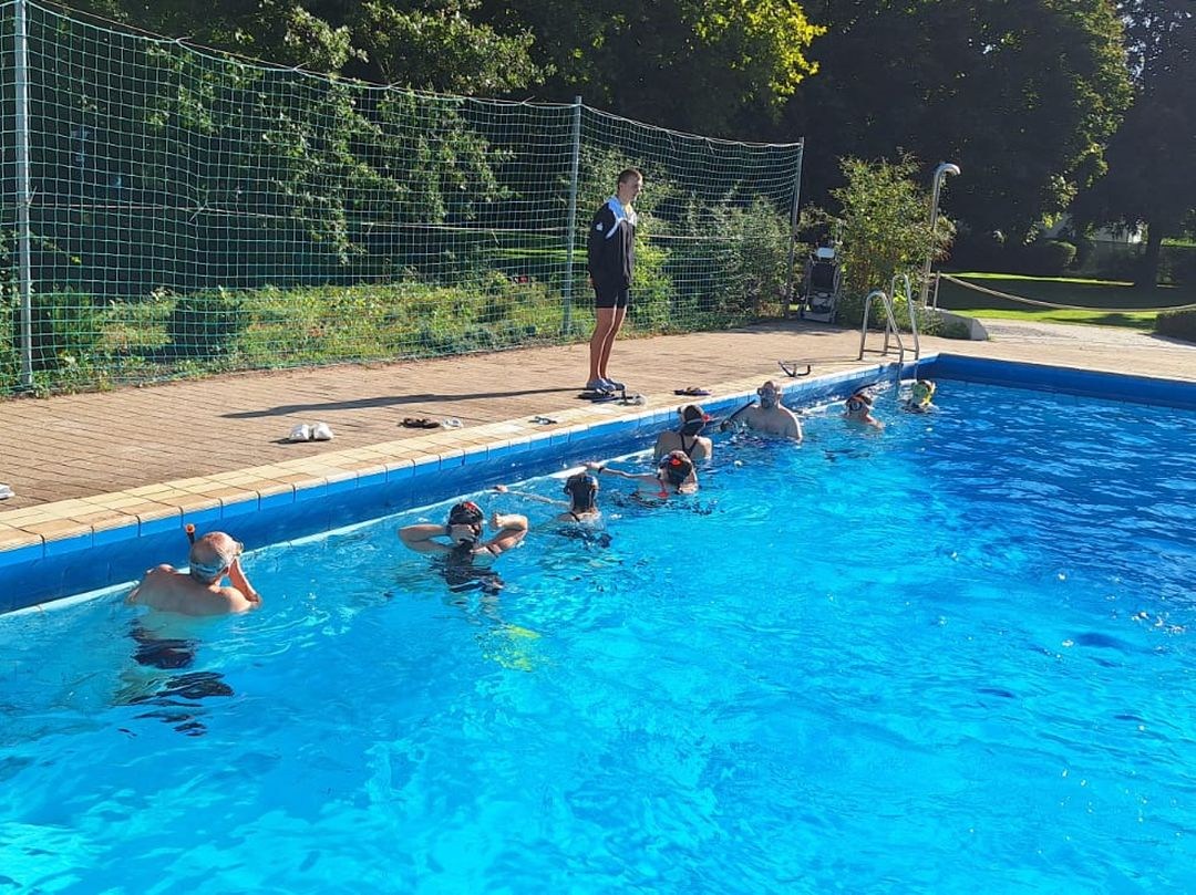 Der Lehrgang bot eine ausgewogene Mischung aus Theorie und Praxis. Die theoretischen Einheiten umfassten unter anderem Methodik, Didaktik, Sicherheitsaspekte sowie Tauchphysiologie. Im Stadionfreibad konnten wir das Gelernte bei optimalem Wetter praktisch umsetzen.