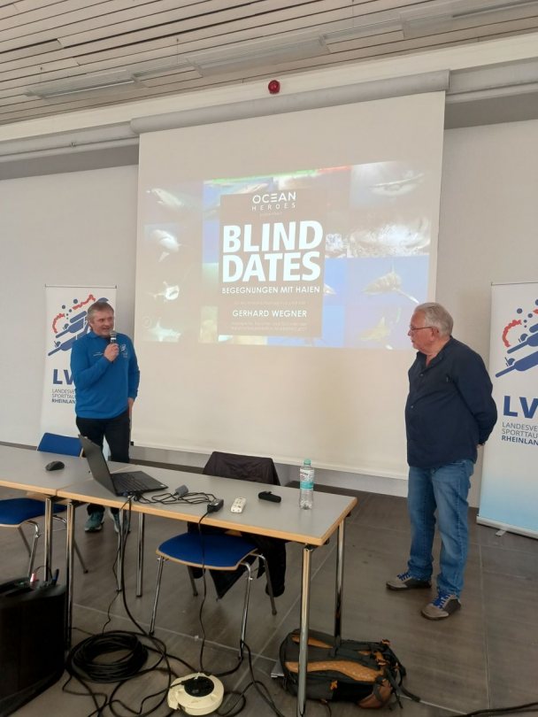 Der erste Höhepunkt bildete der leidenschaftliche Vortrag von Gerhard Wagner (Foto 2) „Blind Dates“, der sich seit langen Jahren in der Lobbyarbeit für den Haischutz einsetzt (siehe auch: https://ocean-heroes.shop). In einer kleinen Zeitreise nahm er die Teilnehmer:innen mit auf eine Fortbildung, wie sich die mehr oder minder unbekannten Meeresbewohner zum Angst-Endgegner entwickeln konnte. Tatsächliche Haiangriffe (1916), pure Erfindungen (1945) und ein Film (Der weiße Hai 1975) machten den Fisch zum Monster. Am Ende ist es schwer erklärbar, wie es überhaupt zu Haiunfällen kommt, man weiß aber, dass bestimmte Faktoren (Stress, Fütterung, fehlender Respekt – Kandidatur Darwin-Award) helfen, gebissen zu werden, wenn man viel Pech hat. Über 700 Todesfälle durch defekte Toaster im Jahr stehen dabei 8,2 Toten im Jahr durch Haie gegenüber. Eines hat die vielfältige Arbeit engagierter Menschen wie Gerhard Wagner bewirkt: Heute wird der Hai wieder als das wahrgenommen, was er ist: Eine gefährdete Tierart.