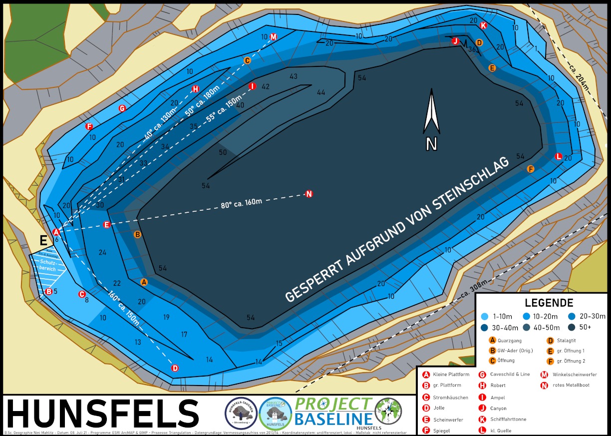 Diese Tiefenprofilkarte wurde uns vom Project Baseline Hunsfels zur Verfügung gestellt, das die Karte erstellt hat und die Rechte an dieser Karte besitzt.