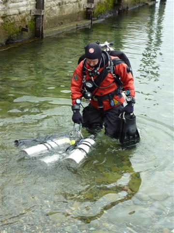 Am Freitag hatten wir die beiden ersten Tauchgänge dieses Wochenendes mit Skills und dem Tauchen nach Runtime. Die Logistik der Füllstation-Bodensee war für unsere Anforderungen gut ausgerüstet. Unsere Flaschen – immerhin 5 Doppelpakete, 5 Argon Flaschen und 10 Stages für Instruktoren und Schüler – wurden immer schnell und präzise gefüllt. | ||