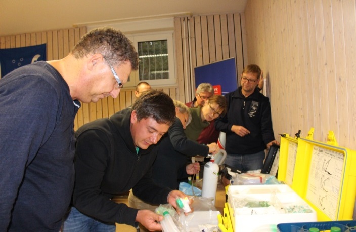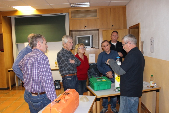 Für den Praxisteil gab es dann unterschiedliche Stationen, an denen die Teilnehmer ihr Erste-Hilfe-Wissen überprüfen konnten, Wiederbelebung an der Puppe trainieren, Beatmen mit dem Ambubeutel testen, Stabile Seitenlage, Schocklage, AED, unterschiedliche Sauerstoffsysteme begutachten und einiges mehr.