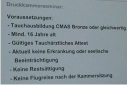 Diese stellen die wichtigsten Richtlinien im Bereich Tauchsport dar und sind neu überarbeitet. Deshalb bittet Uwe die Anwesenden die neuen Inhalte zur Kenntnis zu nehmen.
