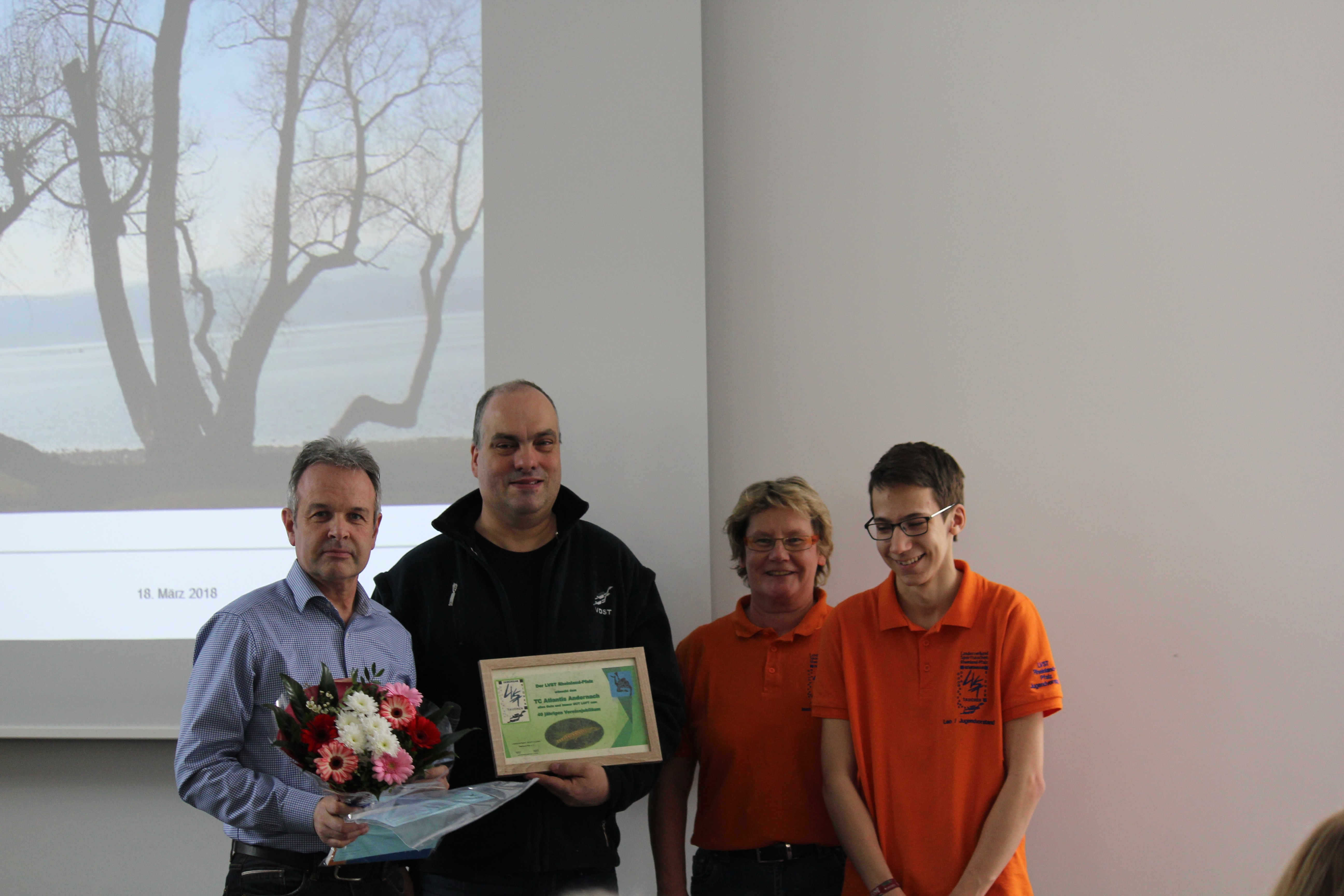 Zum Ende der Veranstaltung gratuliert die Präsidentin des LVST Ines Heinrich den Teilnehmern des TC Andernach für das 40 jährige Vereinsjubiläum und überreicht die Urkunde und ein Präsent vom LVST.