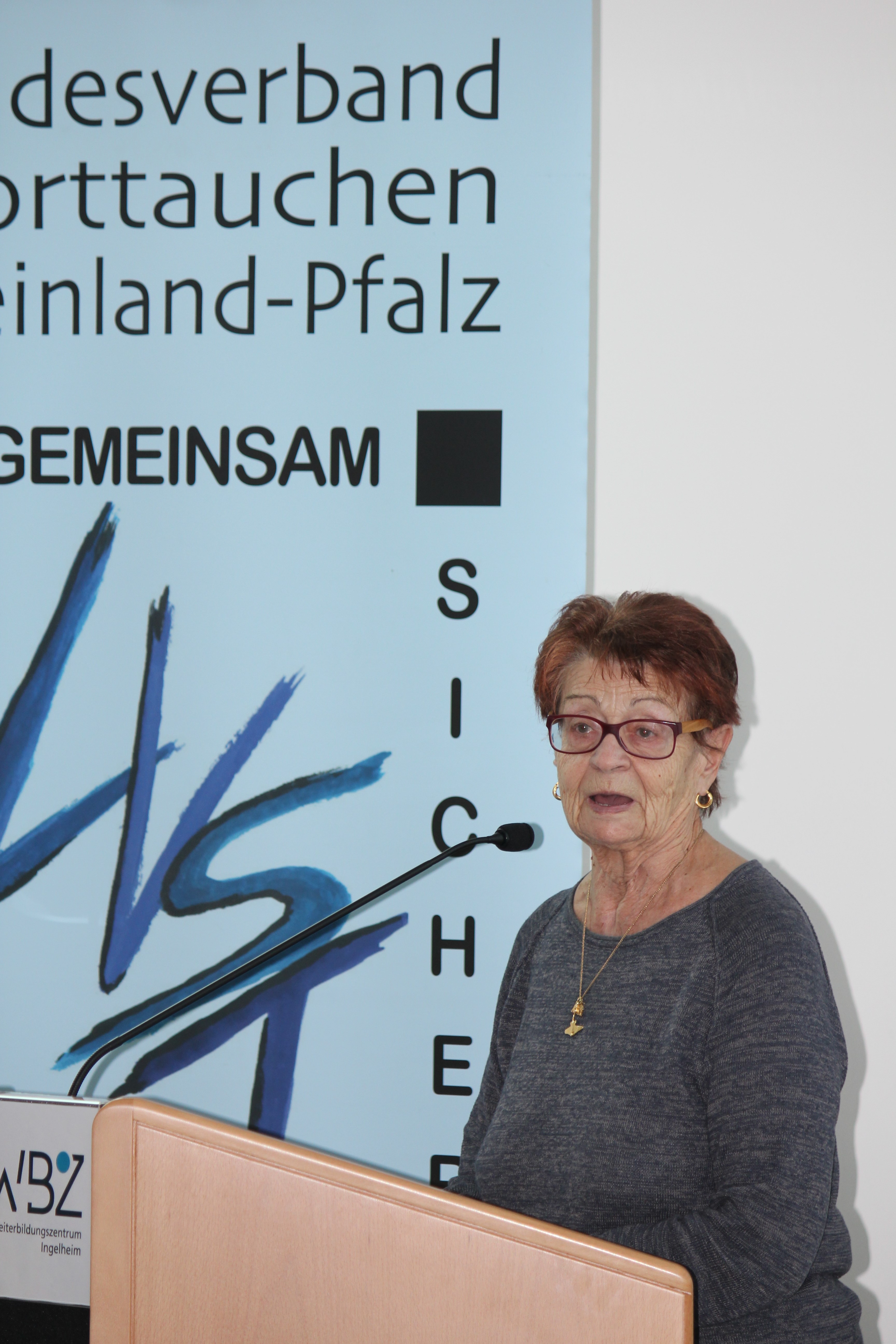 Nach der Pause, die die Gelegenheit zum Austausch unter den Teilnehmern bietet, schließt sich der Vortrag der Präsidentin des badischen Tauchverbandes, Frau Hannelore Brandt an.