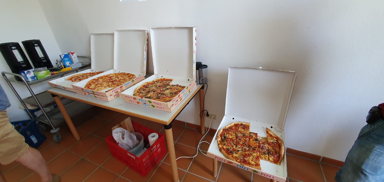 Es gab Kuchen und kalte Pizza. Ein herrliches Frühstück. Vielen Dank in diesem Zusammenhang an die ungeschlagene Organisation und die Hilfe aller Unterstützer.