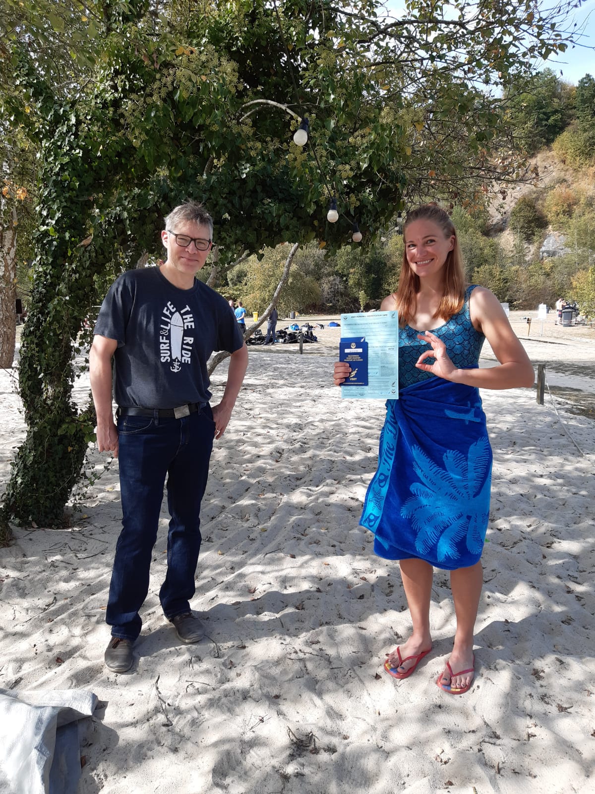 Aber ich bin seit 2013 Trainer C, seit 2017 TL* und am 20.092020 konnte ich meinen 100sten geloggten Ausbildungstauchgang dort mit unserem Vereinsmitglied Yvonne im Rahmen der DTSA*-Ausbildung begehen. Nicht alle Ausbildungstauchgänge führten mich natürlich nach Diez. Ich war auch im Jäger- und Marxweiher (mehrere Landesjugendlager), Hemmoor und Stromberg. Aber Diez ist mein "Haussee" und mit 50 km Entfernung noch ganz gut erreichbar.