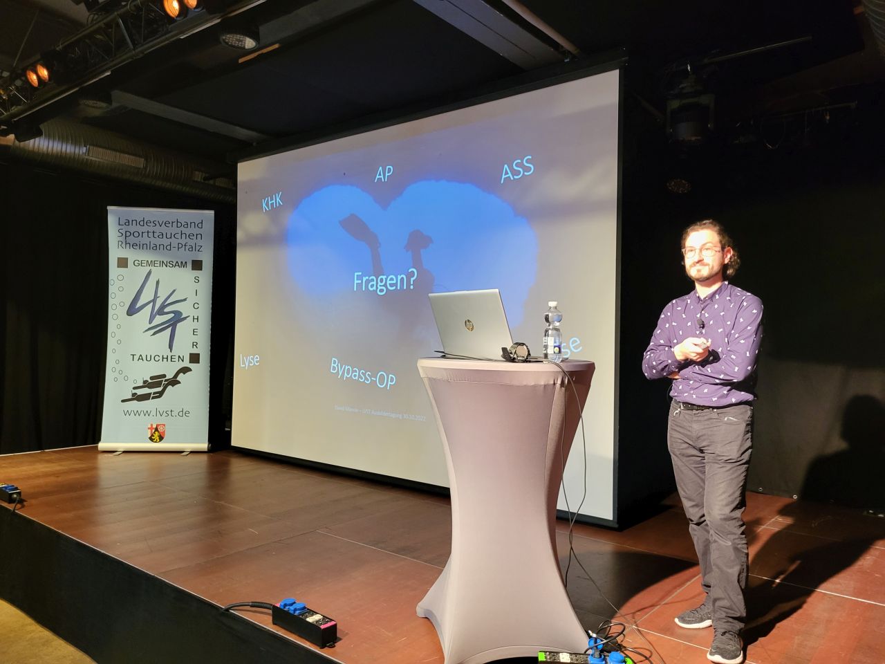 Nahe beim Thema Tauchunfall war der Vortrag von David Männle (HNO-Arzt und TL2 im TC Heidelberg), der die Frage der Tauchfähigkeit bei verschiedenen chronischen Erkrankungen vorstellte. Dabei wählte er in seinen Ausführungen durchaus pragmatische Ansätze und vermied auch nicht, klare Positionierungen zu tätigen: „Wenn ich vor dem Tauchen rauche, dann ist das Modell, das ich tauche, egal; meine Deko wird immer beschissen sein!“ Im Kern ging es um Herz- Kreislauf-Erkrankungen, Tauchen nach Corona, Tauchen mit Diabetes oder z.B., wenn ich an entzündlichen Erkrankungen leide (Rheuma, Bandscheibe usw.).