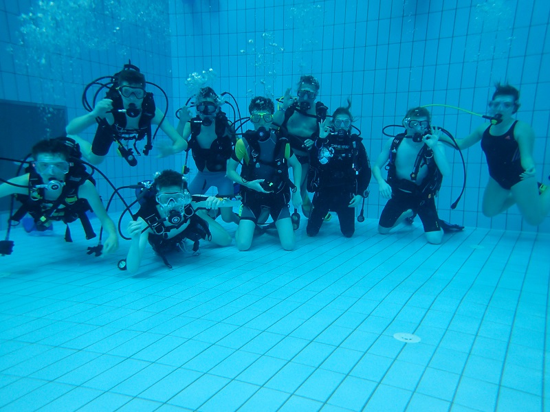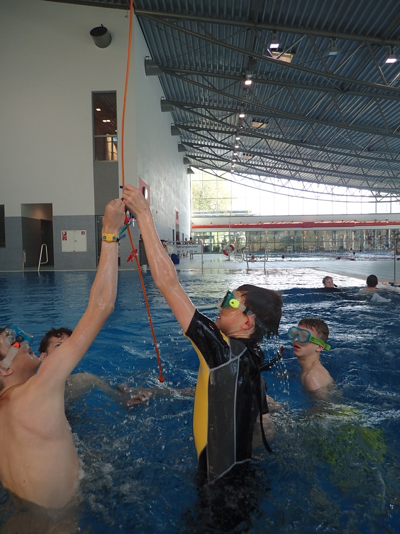 Während der dreitägigen Projekttage konnten Schülerinnen und Schüler zusammen mit Tauchlehrerinnen, Tauchlehrern, Betreuerinnen und Betreuern vormittags das Tauchen mit und ohne Gerät im Schwimmbad ausprobieren. Dabei bekamen sie ein Gefühl für das Tauchen und konnten ausprobieren, ob es etwas für sie ist.
