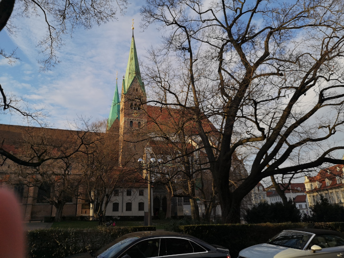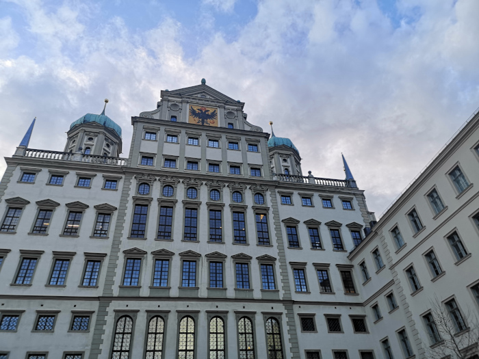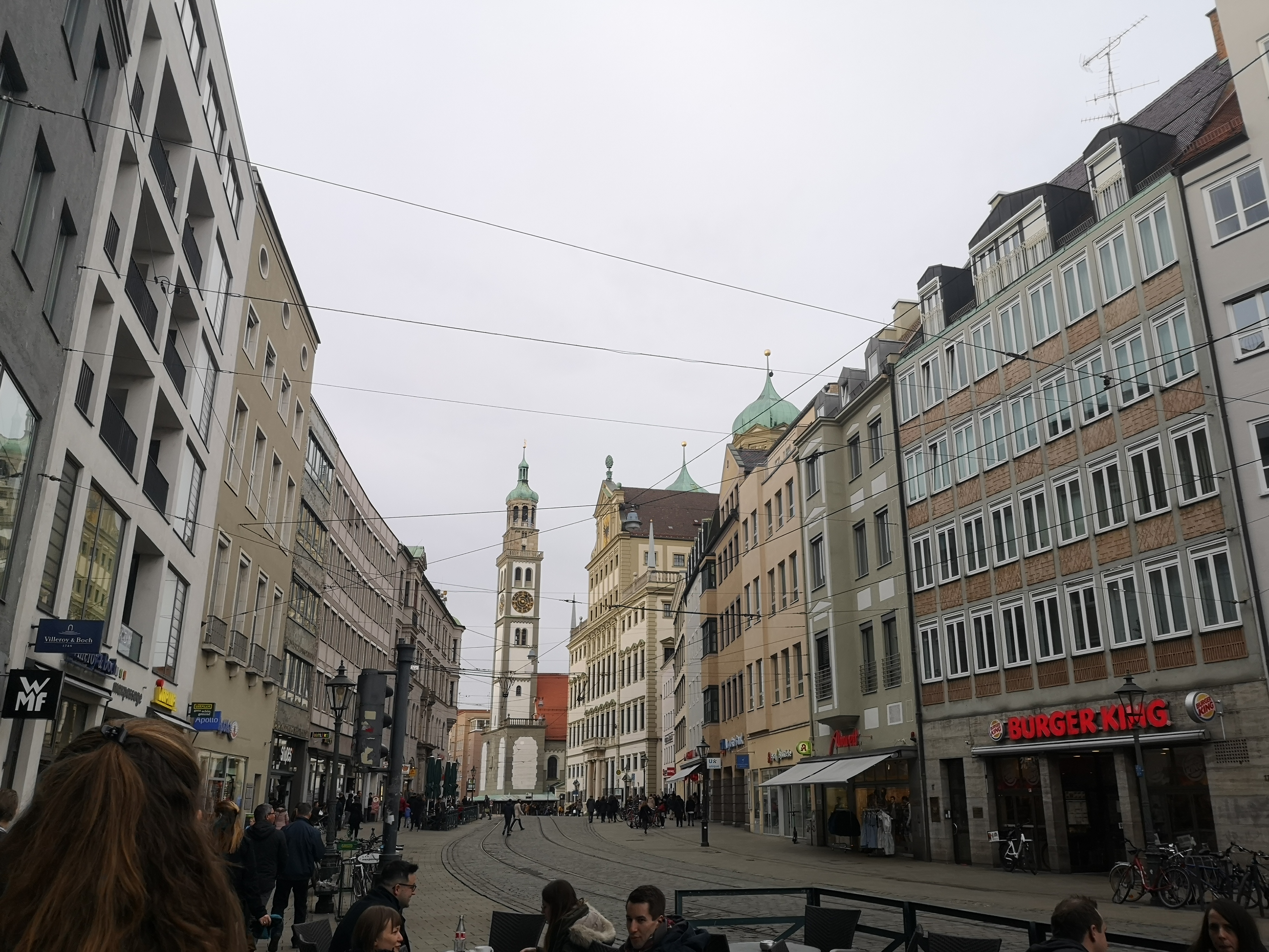 Nach dem Mittagessen und kurzen Besprechungen in Gruppen wie z. B. einer Mediengruppe aus unseren jugendlichen Anwesenden und Dietmar Fuchs, in der über soziale Medien und deren Funktion diskutiert wurde, trafen wir uns, um an einer Führung durch Augsburg im Sonnenschein teilzunehmen. Das Motto der Führung war "Liebe" und bezog sich auf die Epoche des Mittelalters. Während der Führung erfuhren wir Legenden, Mythen und Fakten wie z. B. warum man den Ehering am Ringfinger trägt und weshalb vor dem Standesamt der Herkulesbrunnen steht. Der Herkulesbrunnen soll symbolisieren, was mit "Hausdrachen" passieren kann.