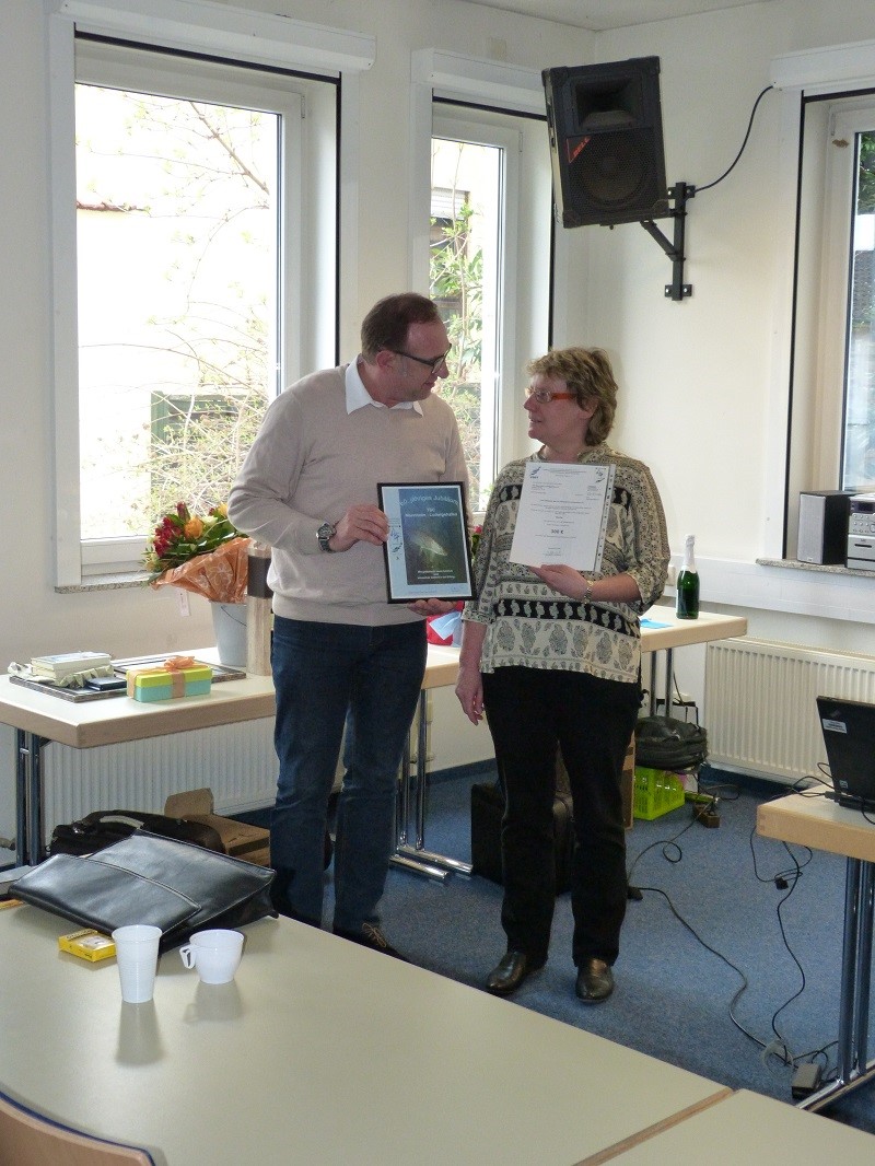 Danach gab es noch eine weitere Ehrung: Der Tauchclub MaLu wurde von Ines für sein 60jähriges Bestehen geehrt und bekam eine Jubiläumsurkunde und 300,-- € für den Verein.