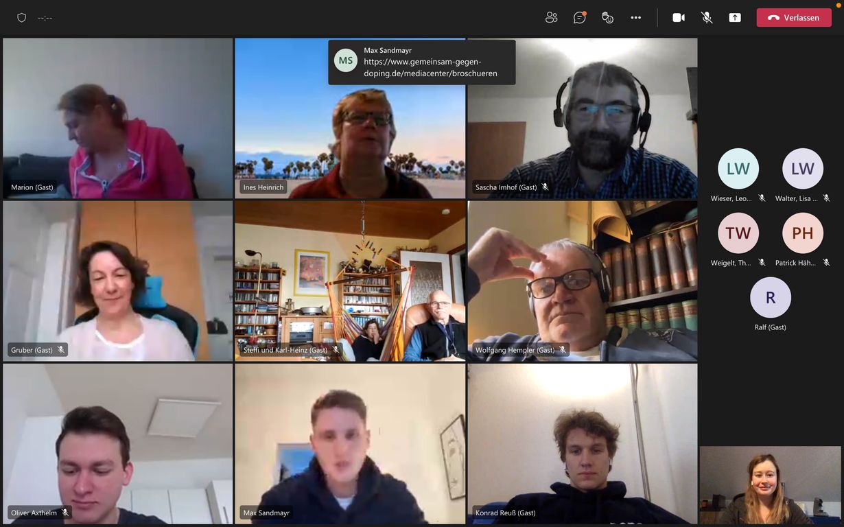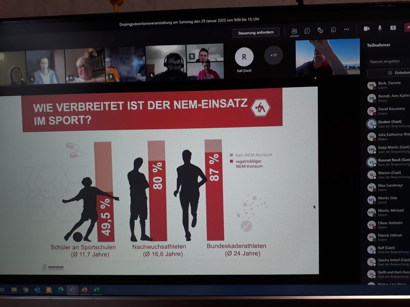 Am 29.Januar 2022 fandTeil 1 des LVST-Seminars zur Anti-Doping Thematik und Trockentraining für's Flossenschwimmen online statt. Den ersten Teil von 9 Uhr bis 11 Uhr referierten zwei Mitarbeiter der NADA, die es wieder einmal verstanden, unsere TrainerInnen und SportlerInnen interaktiv miteinzubeziehen.